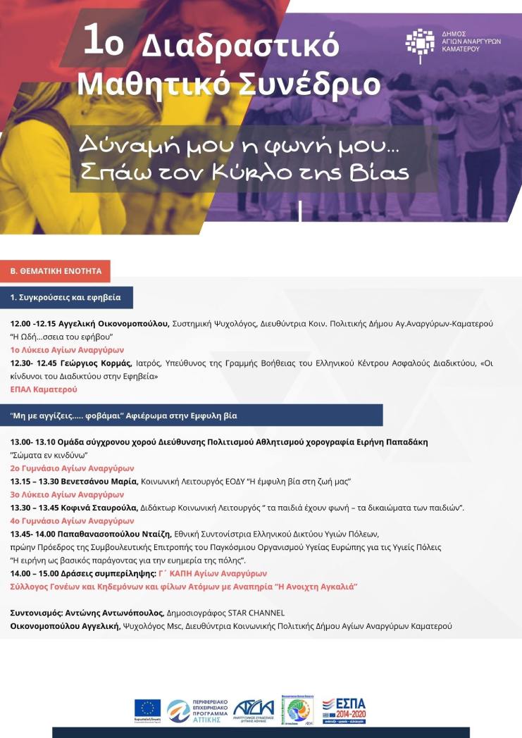 1ο Διαδραστικό Μαθητικό Συνέδριο με θέμα: «Δύναμη μου η φωνή μου...σπάω τον κύκλο της βίας».